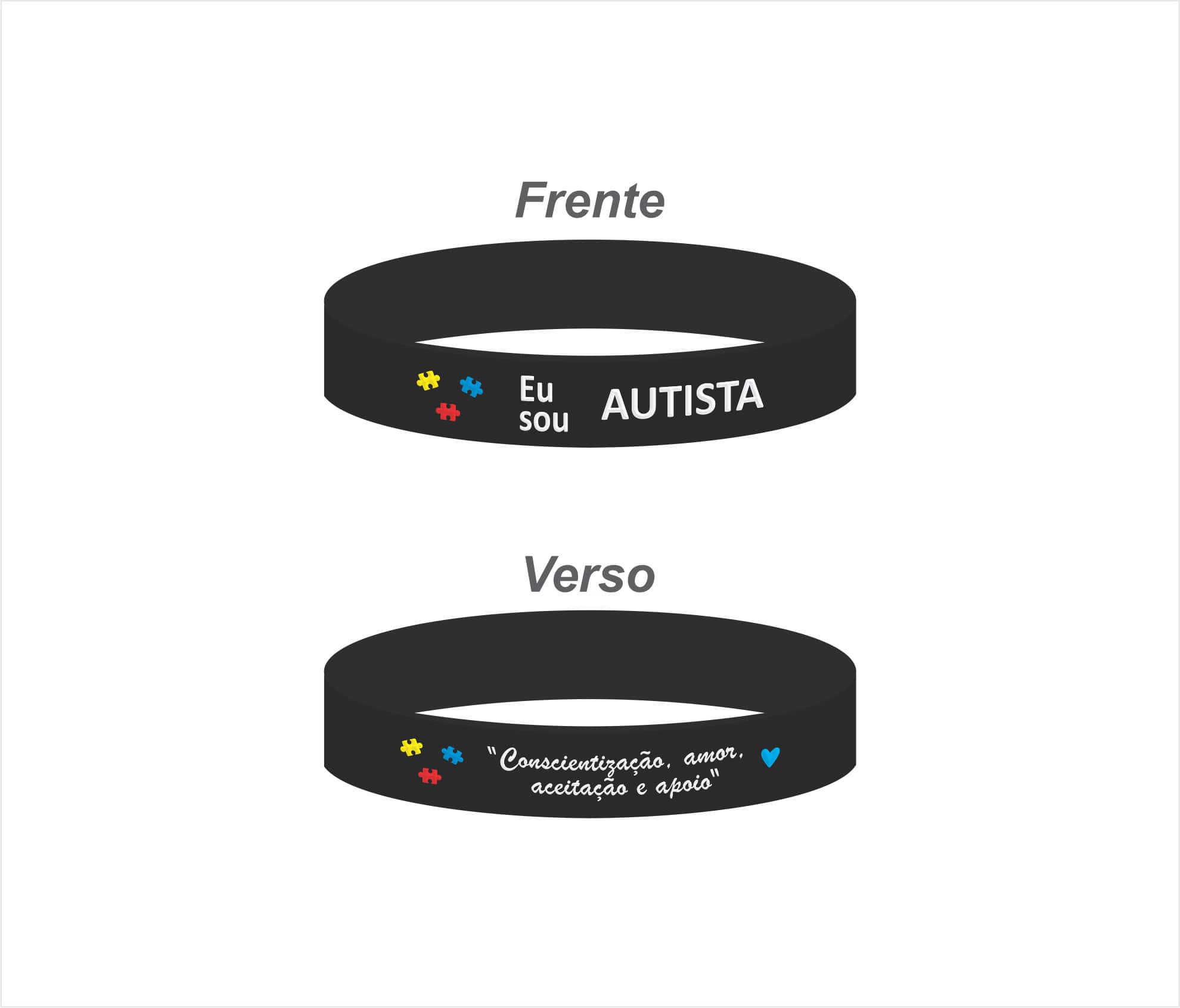 Pulseira “Eu sou AUTISTA” – identificação clara, com mensagem de acolhimento e conscientização no verso.