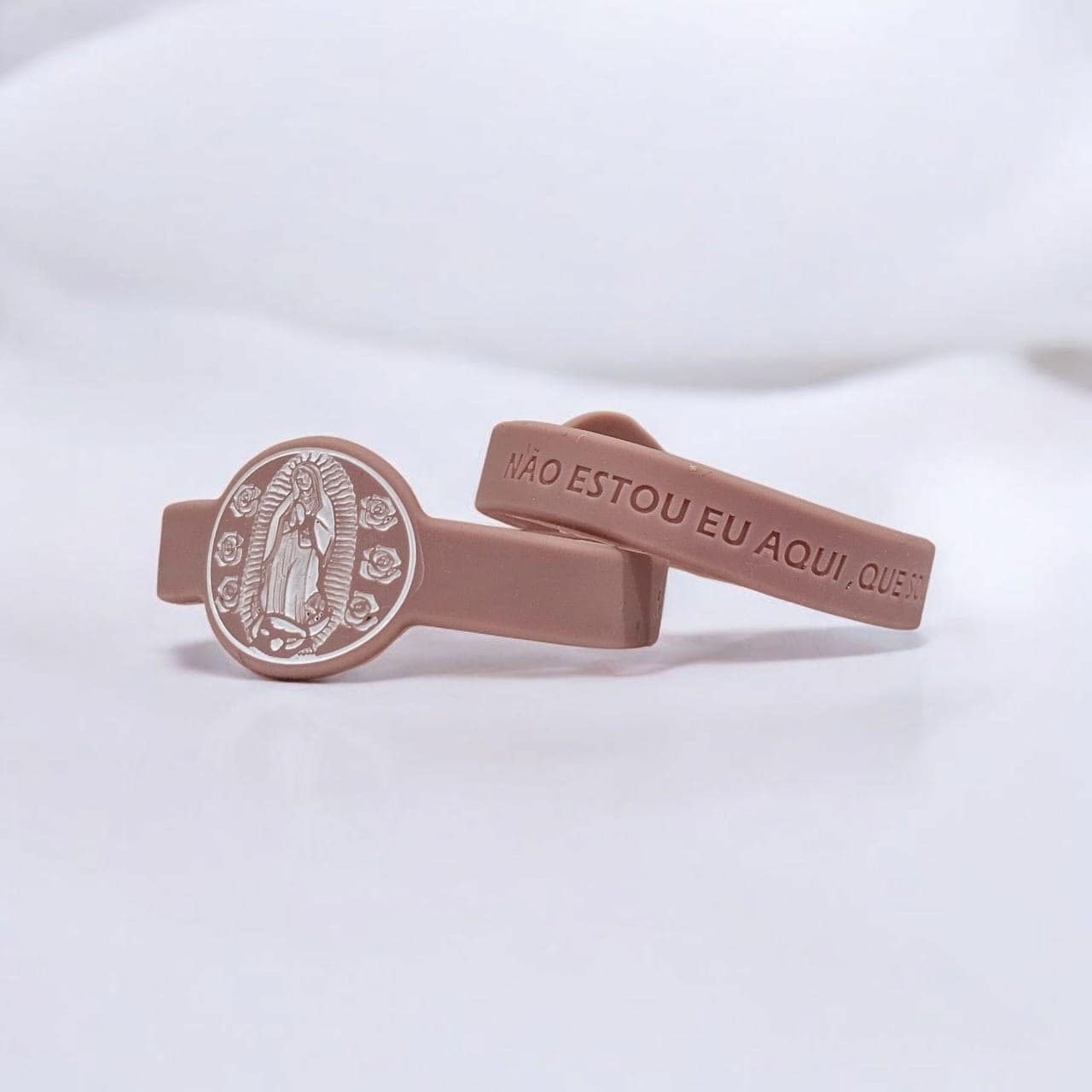 Pulseira em silicone com a imagem de Nossa Senhora de Guadalupe e a frase: